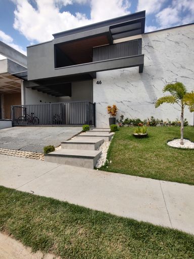 Casa de alto padrão à venda no Condomínio Santa Mônica II, em Mogi Guaçu, com excelente localização, oferecendo quatro dormitórios, sendo duas suítes. Um dos dormitórios está localizado no térreo e pode ser utilizado como escritório, trazendo praticidade e versatilidade ao projeto. A sala é integrada, ampla e bem iluminada, proporcionando conforto e sofisticação. A área de lazer é espaçosa, com churrasqueira e banheiro de apoio, ideal para receber família e amigos. O imóvel conta ainda com lavanderia coberta, garagem para dois veículos e dois dormitórios equipados com ar-condicionado. Casa impecável, com excelente padrão de acabamento, pronta para morar e perfeita para quem busca conforto, elegância e qualidade de vida.