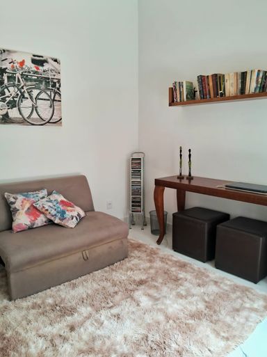 Geladeira, TV, colchão, pequenos móveis, máquina de lavar, mesa com 6 cadeiras da área gourmet, micro-ondas, sofá reclinável de 3 lugares, aparador de café, cadeiras do jardim de inverno, box/baú Queen da suíte, ar-condicionado e quadros da sala.