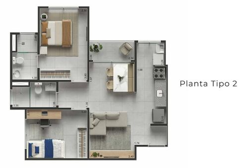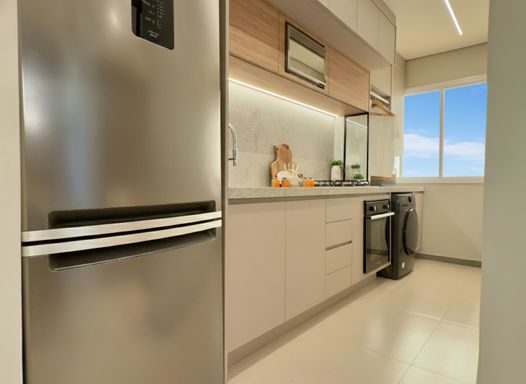 Apartamentos de 55 e 56 m², com varanda, 2 dormitórios (1 suíte) e opções com 1 ou 2 vagas de garagem, em localização estratégica: atrás da Havan, com fácil acesso à rodovia P340.