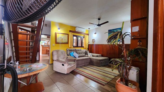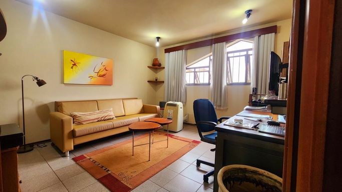 São 03 quartos internos na residência. 02 suítes. Uma das suítes, aloca-se no mezanino da residência. Esta suíte no mezanino, é ampla, rústica, toda em madeira de lei, e tem-se vista ampla pela janela, vendo-se os arvoredos do antigo colégio à rua paralela deste imóvel.